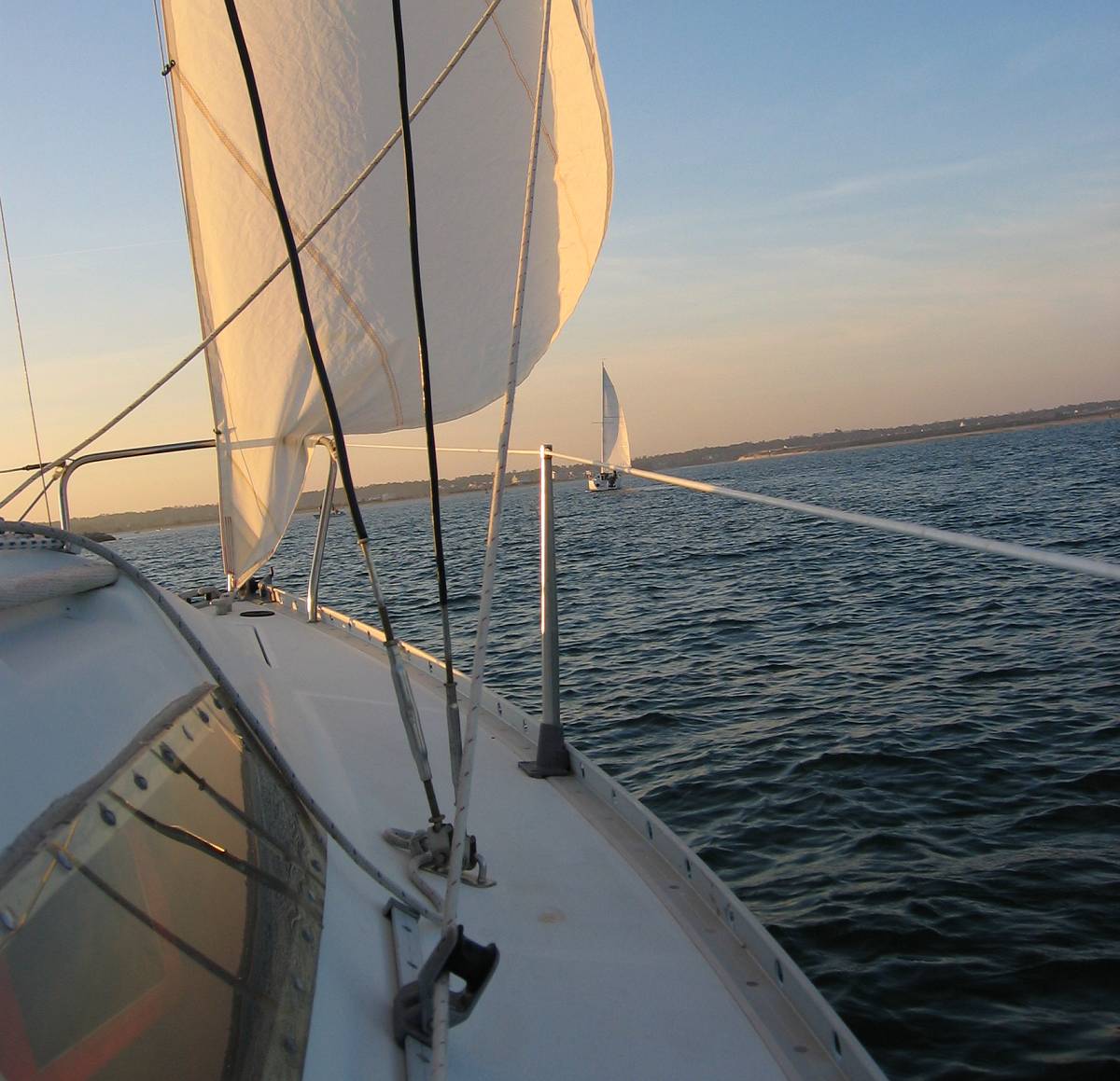 Sun is going down and we are tacking around in the inlet. I had just come from