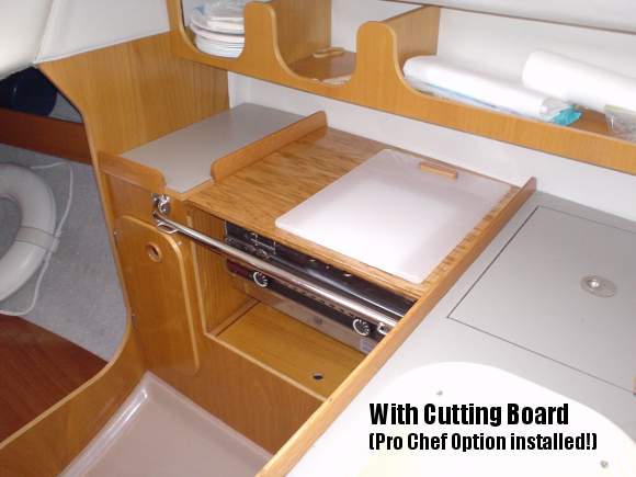 heeling hard to starboard, a small wooden toggle on the left cabinet